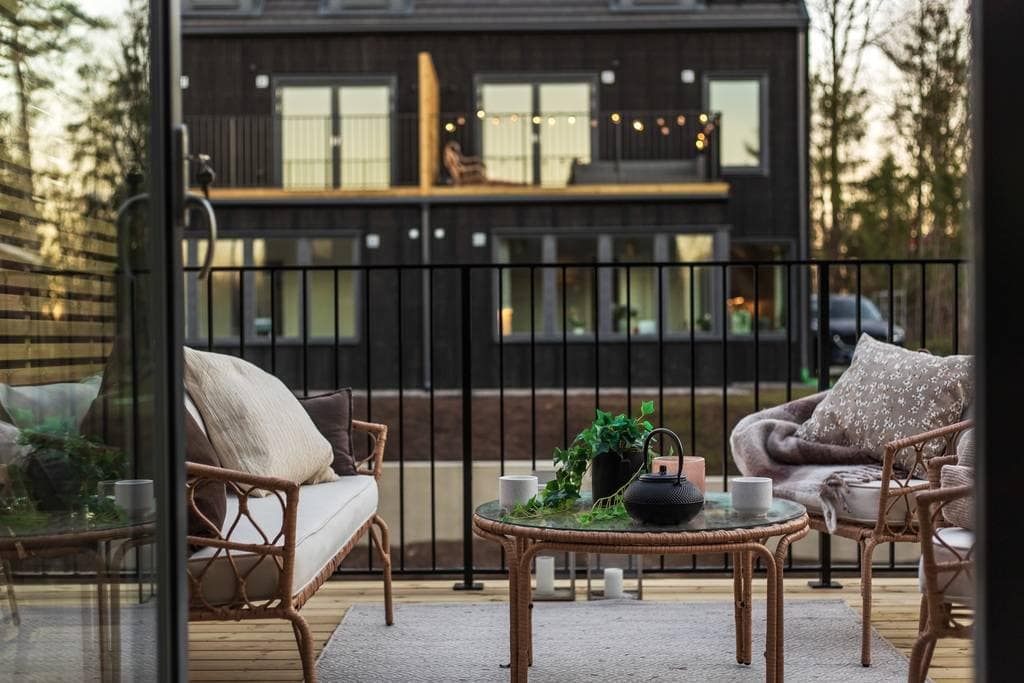 Till varje bostad ingår en egen finplanerad naturtomt med gräsmatta med sått gräs, ängsfrön och bevarad natur i den mån det är möjligt. Samtliga bostäder får en generös uteplats med möjlighet till en stor altan. Vi erbjuder bland annat två stycken balkonger, varav den ena är en stor privat takterrass på mellan 15-20 kvm, och den andra balkongen på ca 5 kvm nås från master bedroom. Till varje bostad tillkommer 2 parkeringsplatser. Det finns även möjlighet till solceller och laddstolpe för elbil.